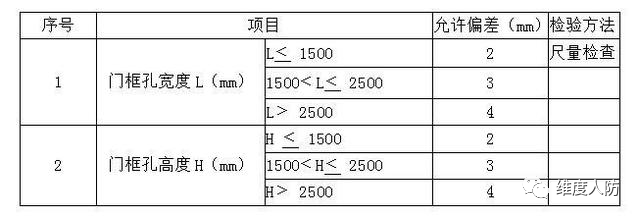 《人民防空工程防護設備產品質量檢驗與施工驗收標準》(RF01-2002)表3.3.24門扇、門框貼合面中心線的尺寸偏差合格要求:±4mm。