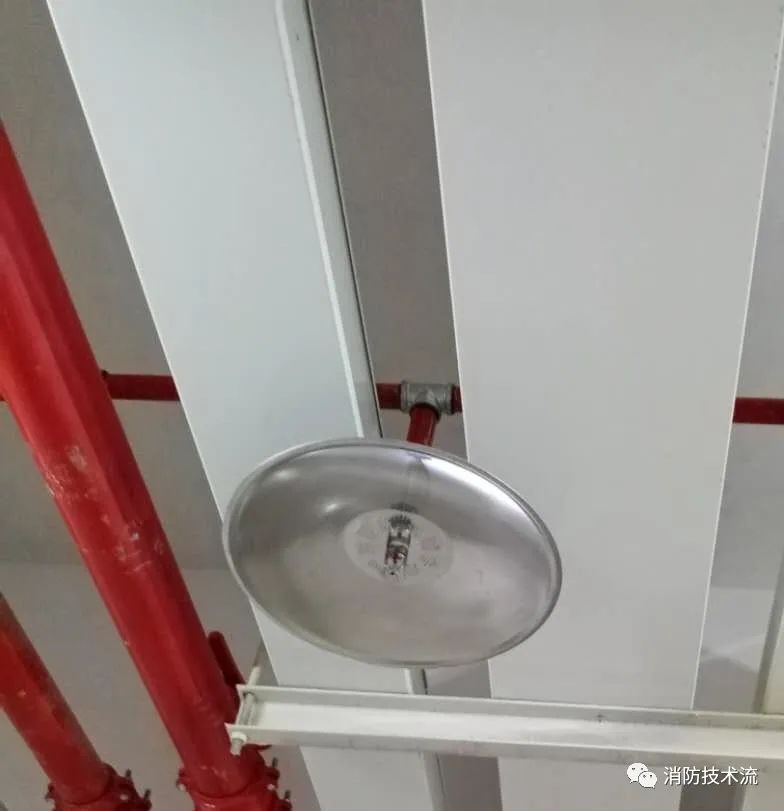 擋水板應為正方形或圓形金屬板,其平面面積不宜小于0.12m2,周圍彎邊的下沿宜與灑水噴頭的濺水盤平齊。除下列情況和相關規范另有規定外,其他場所或部位不應采用擋水板。