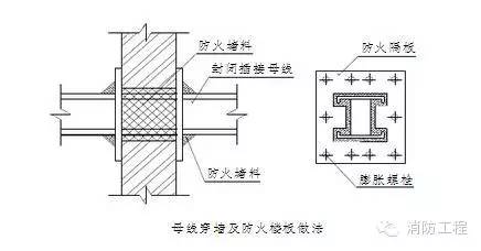 7.封閉插接母線在穿過墻及防火樓板時(shí),在母線周圍填充防火堵料,具體做法見上圖。