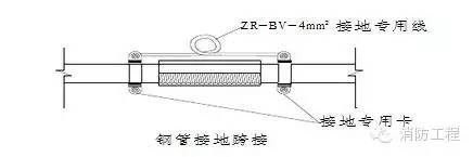 4.鋼管絲扣連接時(shí)在管接頭的兩端裝設(shè)專用接地跨接線,如圖。