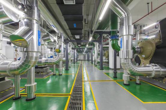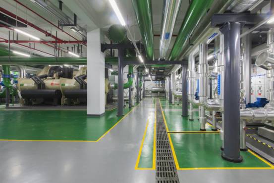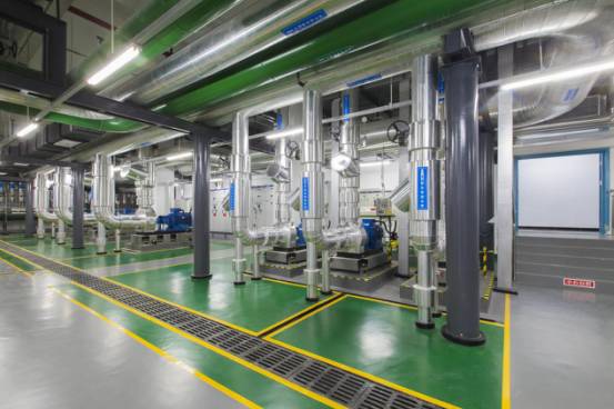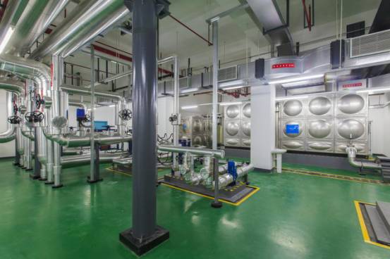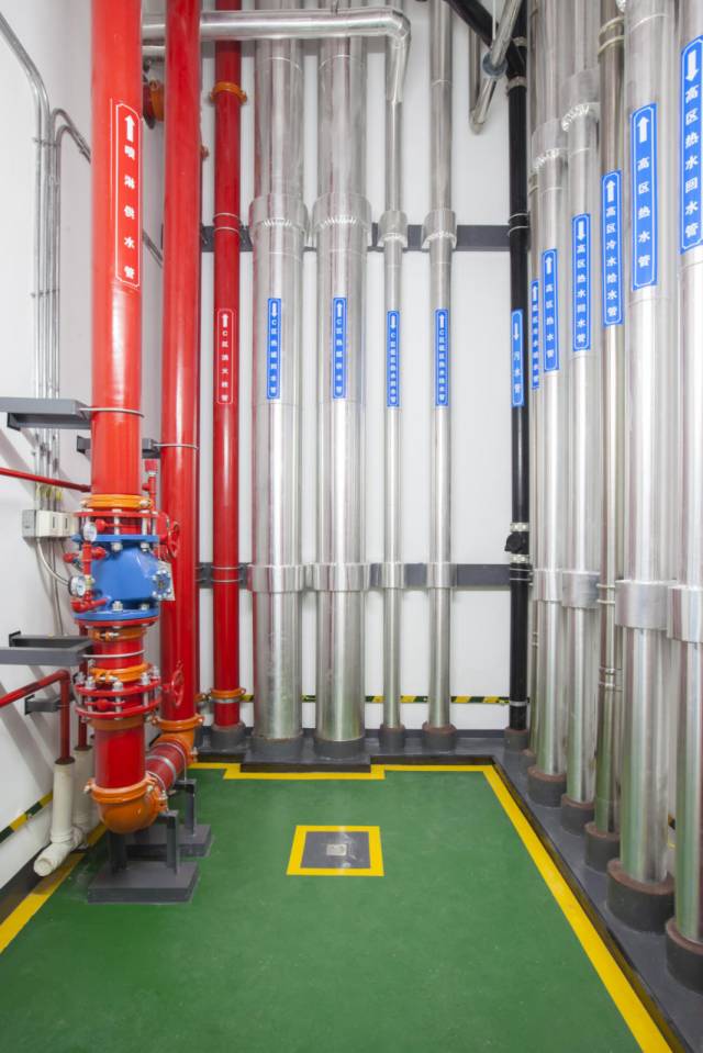 空調換熱機房布局合理,設備運行可靠,支架安全、可靠、大氣,標識清晰