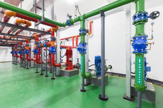 消防泵房設備布局美觀,閥門高度一致,油漆涂刷均勻,管道成排成線,標識清晰