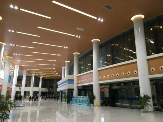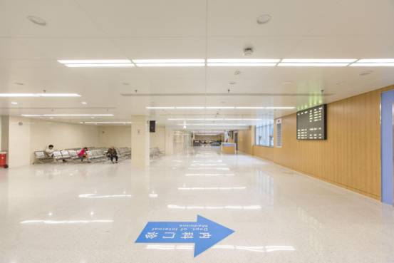 診室候診區燈具、噴頭、風口、煙感排布精細美觀,橫成排、豎成行、斜成線,錯落有致