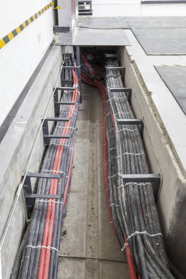 配電房內配電柜安裝布置合理,安裝垂直牢固,電纜溝內線纜鋪設有序,標識清晰,接地可靠,系統運行平穩。
