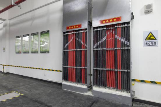 豎向橋架內電纜排布有序,標識清晰,防火封堵到位