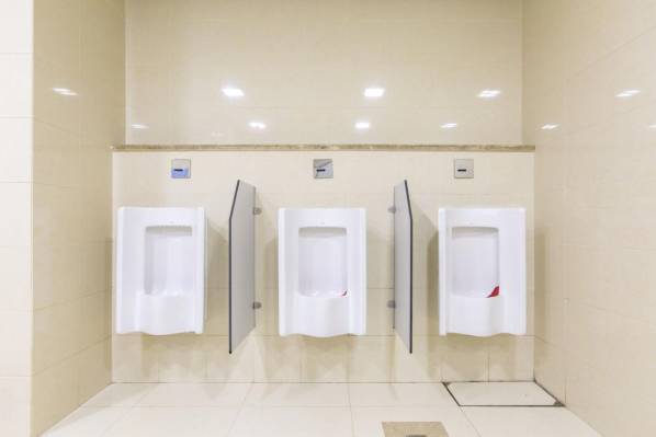 衛生間內潔具安裝位置準確,間距相等,高度一致,地漏布置居中。