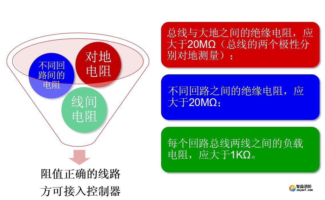 火災自動報警系統導線敷設后,在安裝現場設備之前,應對每回路的導線用500V的兆歐表(搖表)測量絕緣電阻,其對地絕緣電阻值不應