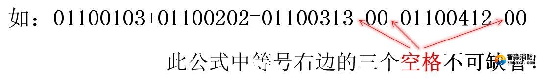 例如:01100103+01100202=0110031300 含義:用戶編碼為011001的煙感或用戶編碼為011002的溫感報火警,將聯動啟動用戶編碼為