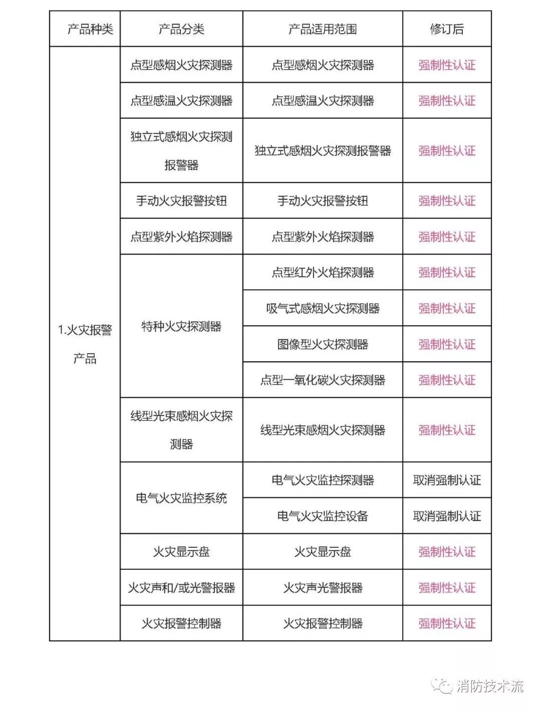 取消部分消防產品強制性認證并開展自愿性認證后,最新最全消防產品認證目錄